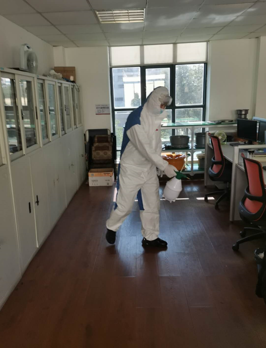 保障每位員工的健康是復工生產不容忽視的重要部分,充足的防疫物資是打好復工持久戰(zhàn)的關鍵。采購組積極準備各類防疫物資,確保了口罩、酒精、消毒液、噴壺等發(fā)放至生產車間和員工手中。此外,公司黨支部黨員勇當消毒先鋒提前做好辦公區(qū)、生產及作業(yè)場地等公共區(qū)域的消毒工作,以降低病毒的滋生能力和傳染力。