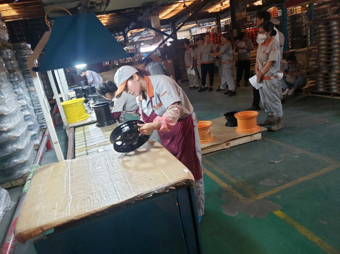 在開賽前隨機挑選了40只含有不同缺陷的鋼圈產品,并對每個產品進行缺陷進行記錄及編號,分為4組,每組10個產品,隨機安排經過編號的參賽選手進行外觀的檢查,需要參賽選手將缺陷名稱按照標準命名表準確的填寫到表格里。經過各選手的奮力拼博,最終四輪車間姜明容榮獲第一名,品質部付雪平榮獲第二名,滾壓車間陳海燕榮獲第三名。