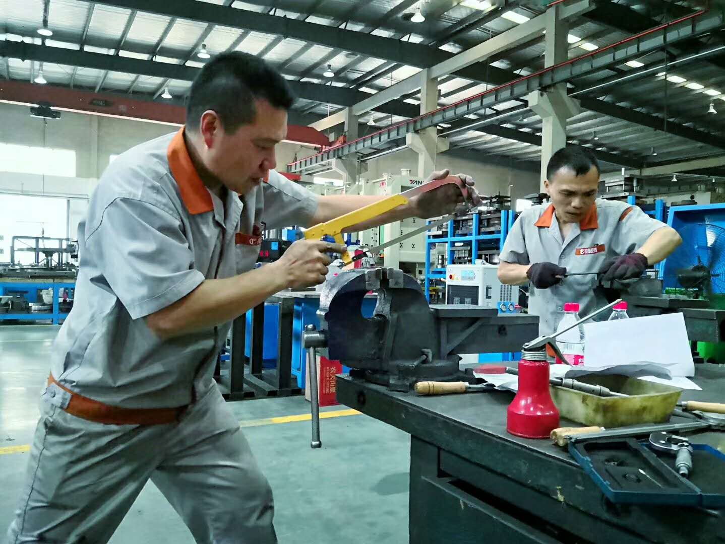 為全面提升鉗工人員的操作技能,526日,研發中心組織開展的鉗工技能競賽在公司鉗工車間舉行。本次競賽以考核職工的鉗工操作技能為核心,注重零件精度、工藝過程的考核,競賽分為理論競賽與實操競賽兩部分。參加竟賽的20名鉗工各展所能,一決高低。對獲得此次大賽前2 名的選手,由公司授予“公司技術能手”榮譽稱號,并推薦參加溫嶺市職業技能大賽。對獲得本次公司大賽第一名的選手,給予經濟獎勵同時工資上調一檔;對獲得本次公司大賽第二名、第三名、第四名、第五名的選手,給予經濟獎勵。