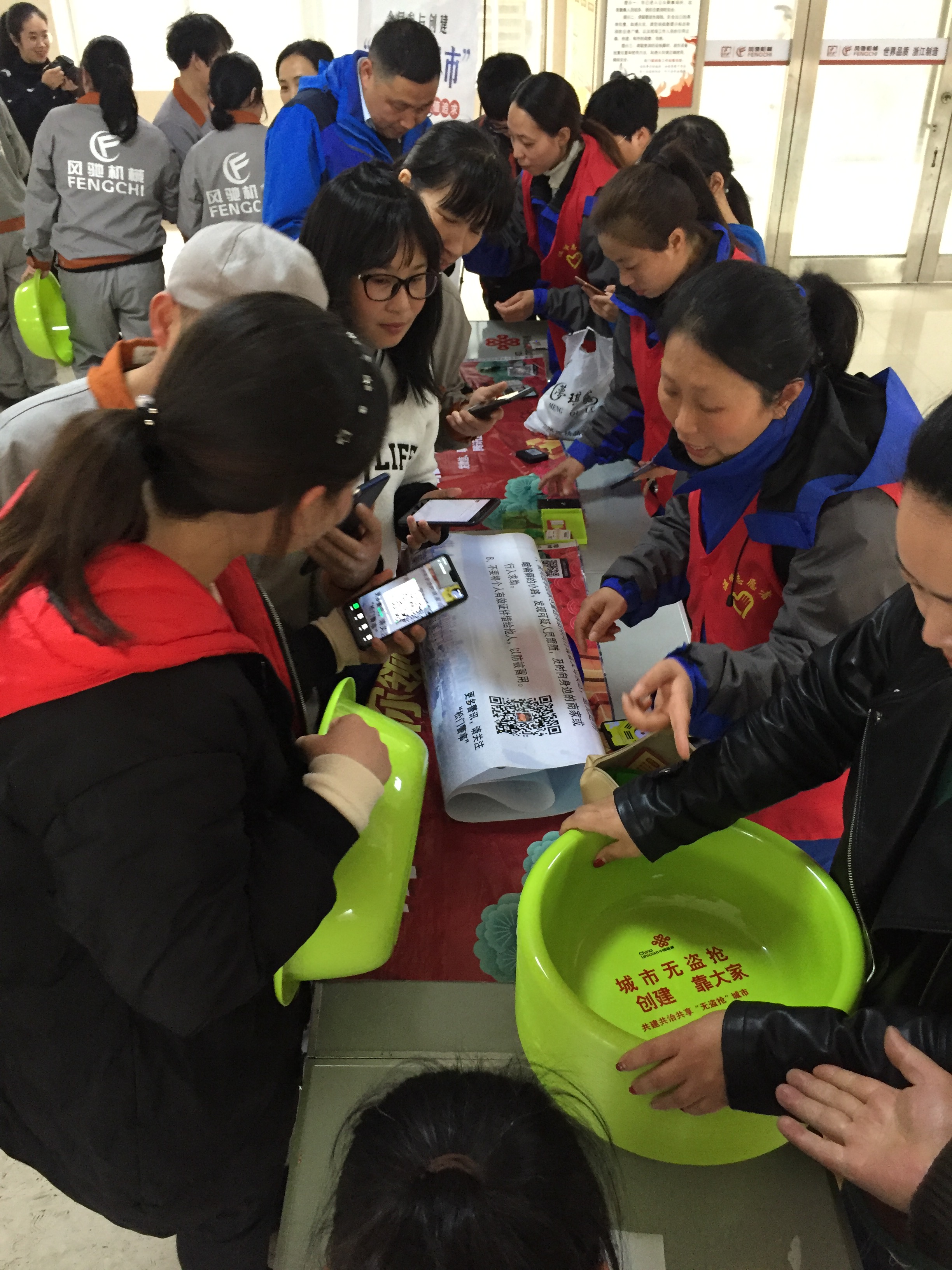 在聽講開始前,員工們紛紛配合民警掃碼關(guān)注了“無盜搶城市”二維碼,同時(shí)依序排隊(duì)領(lǐng)取了由派出所和聯(lián)通公司工作人員一起頒發(fā)的小禮品,各員工在領(lǐng)取禮品后,喜笑顏開,全神貫注的投入到視頻觀看、安全防盜意識(shí)聽講中。