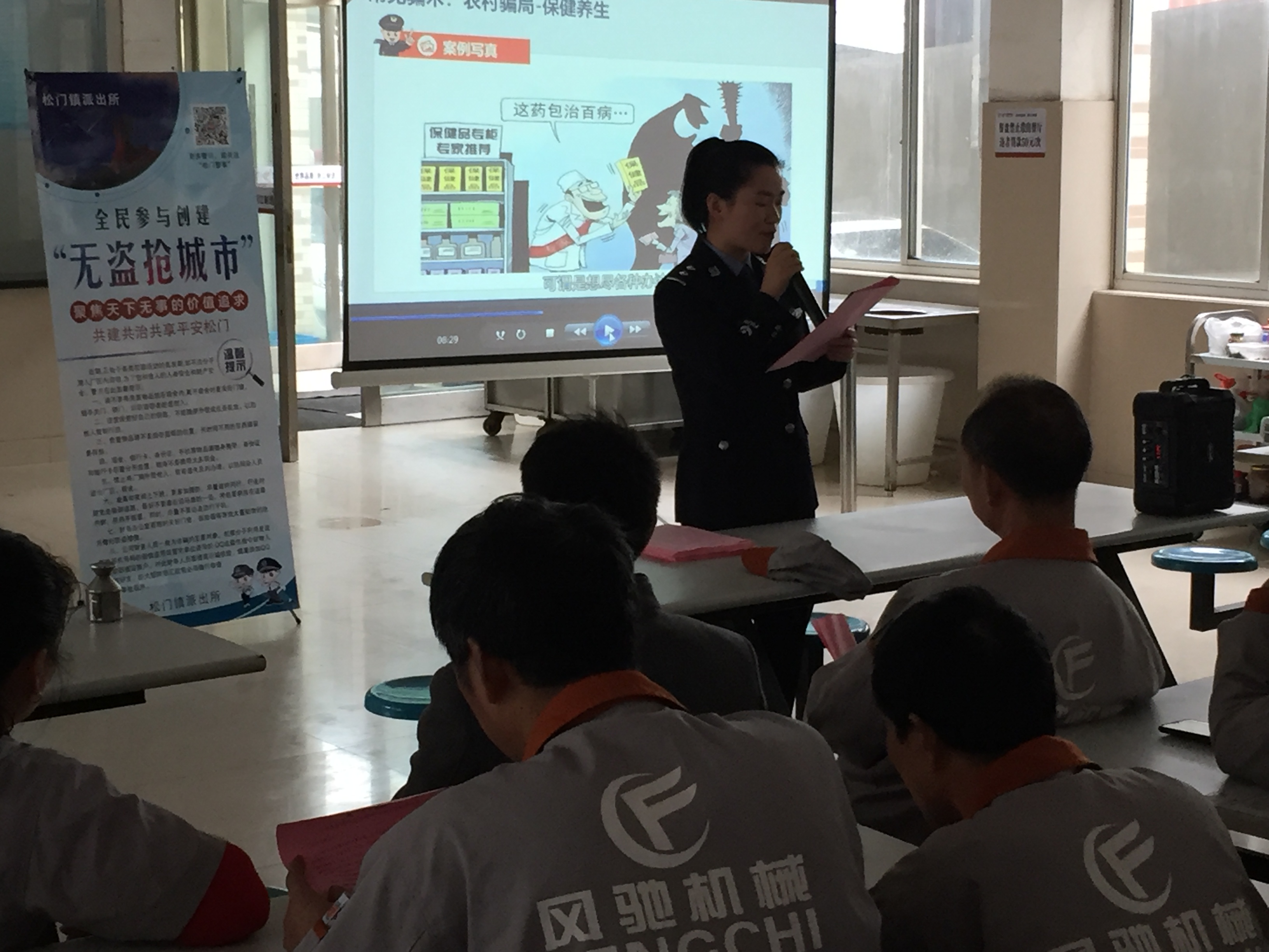 公司為了提高我企業(yè)員工的防盜、防強(qiáng)、防騙意識(shí),同時(shí)大力支持創(chuàng)建臺(tái)州市“無盜搶城市”宣傳活動(dòng),在2019年3月20日下午,我司誠(chéng)邀松門派出所人員前來給員工上了一堂防盜搶安全知識(shí)課,同時(shí)播放了創(chuàng)建“無盜搶城市”宣傳視頻。