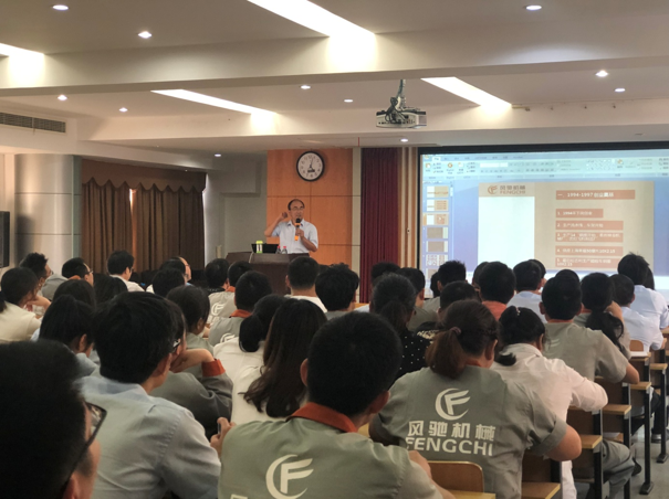 2019年6月14晚,在人力部張西西的力邀下,江總百忙之中趕到公司為大家上了一堂生動有趣地培訓,培訓的主題是《風馳產品的歷史發展之路》。